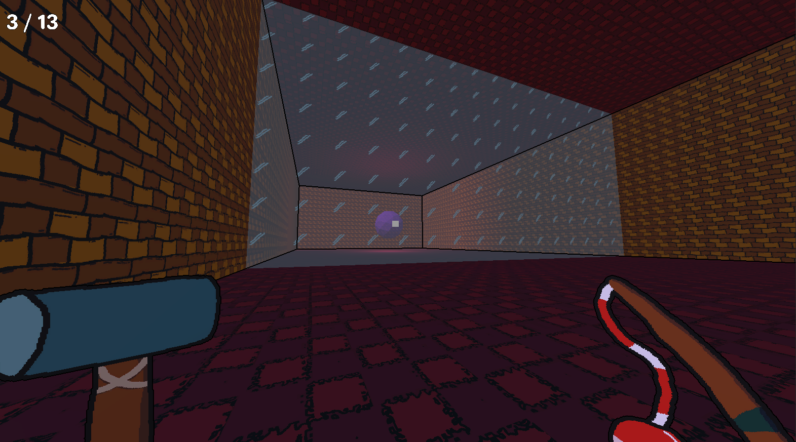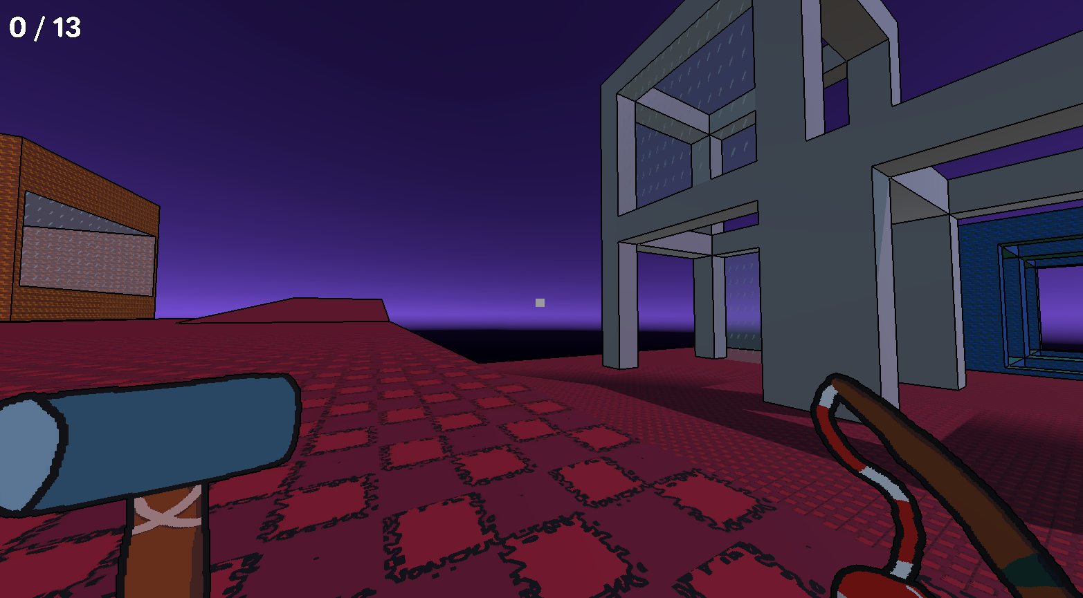 A speedy 3D platformer focused around 2 tools: your hammer, which you can use to break walls and fling yourself, and your fishing rod, which you can use to grapple onto any surface. The game ends when you destroy 13 objects. The level is small and the game only takes a few minutes to complete.